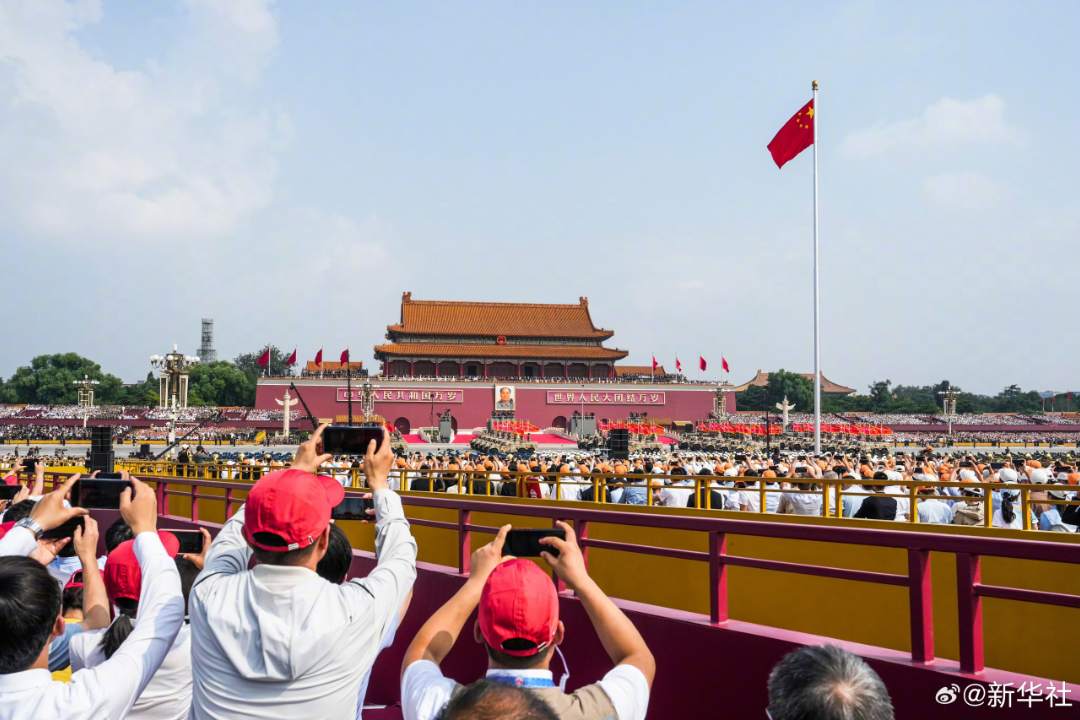 上午9时,纪念中国人民抗日战争暨世界反法西斯战争胜利80周年大会在北京天安门广场隆重举行。会议室内,观筑同事起立注目,随着荧幕上鲜艳的五星红旗冉冉升起,齐声高唱国歌。阅兵式按照阅兵式、分列式两个步骤进行,时长约70分钟。当45个方(梯)队出现在屏幕上时,会议室不时传出阵阵赞叹声。
