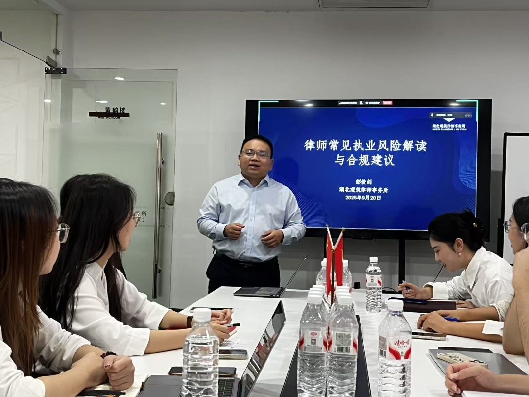 上午,两场高水平的主题授课依次展开。律所党总支书记、高级合伙人彭俊剑律师,从实务出发并结合多年执业心得和经验,为学员们就律师执业风险防范进行了主题授课,对每一位青年律师的成长极具指导意义,为青年律师的未来职业之路保驾护航。