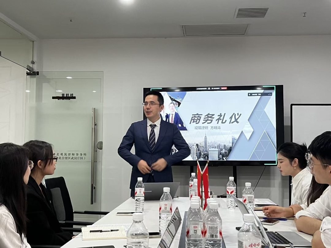 秋意渐浓,学习正酣。2025年9月20日,湖北观筑律师事务所第二届青蓝营第三期培训活动在湖北观筑(湖北自贸区武汉片区)律师事务所(下称“光谷分所”)成功举办。本次活动以“商务礼仪--青年律师的职业必修课”为主题,通过主题授课、情景模拟、互动点评等多元环节,为青年律师打造了一场沉浸式、实战化的成长盛宴。