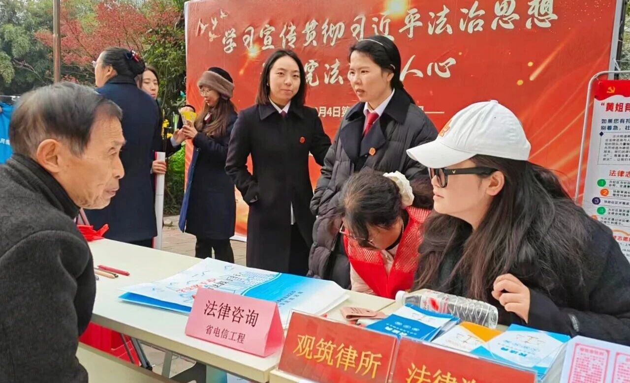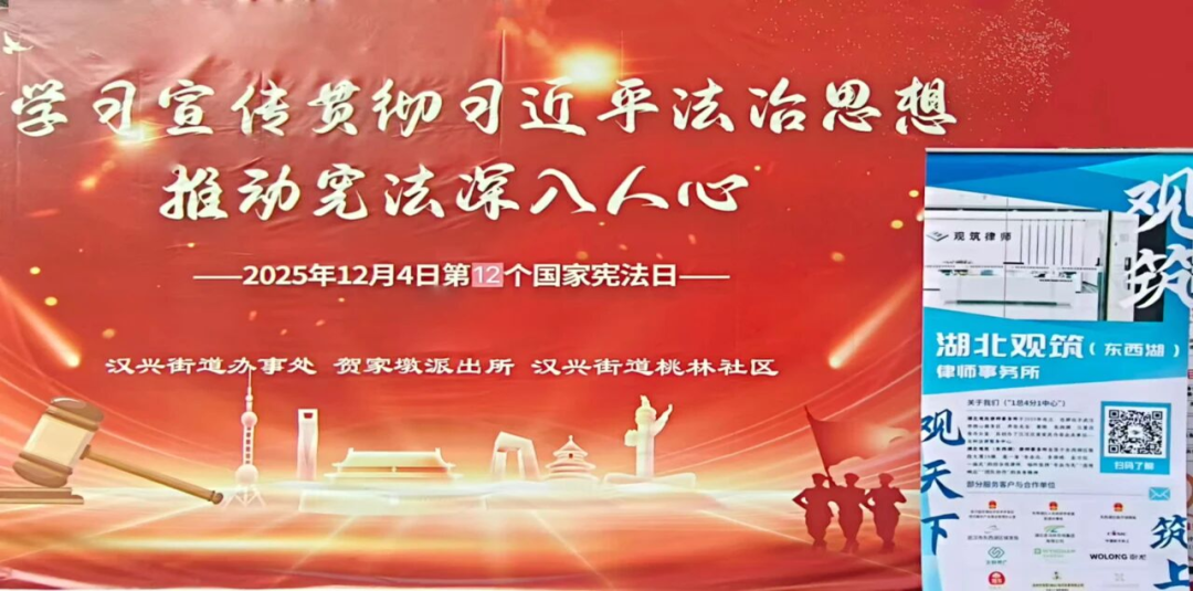 12月4日,第12个国家宪法日如期而至,湖北观筑律师事务所联合汉兴街道桃林社区“黄姐有法子”法律工作室走进桃林社区,将免费法律咨询送到群众家门口,用实际行动践行“学习宣传贯彻习近平法治思想,推动宪法深入人心” 的主题使命。