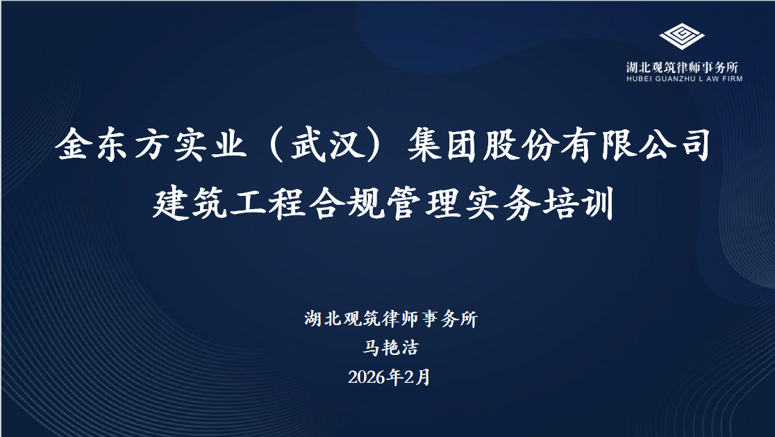 为进一步提升公司在建筑工程领域的合规管理水平,强化项目管理人员的法律风险意识,2026年2月25日,湖北观筑律师事务所高级合伙人、建筑工程业务部负责人马艳洁律师受邀为金东方实业(武汉)集团股份有限公